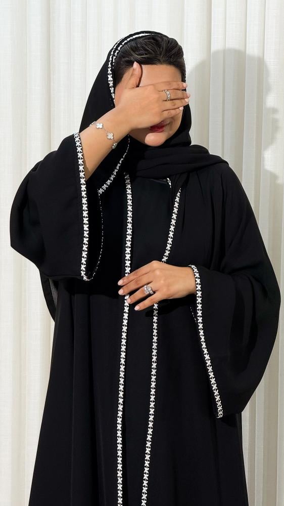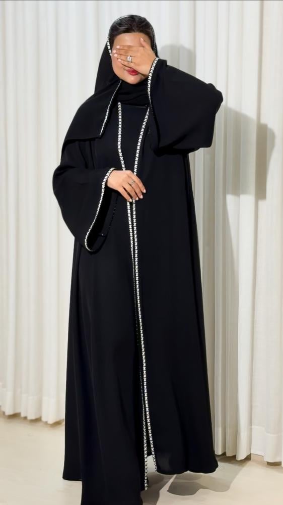 (يشملها طرحه شيفون مجانا ) ملاحظة : قد تختلف درجات اللون في الواقع بسبب إضاءة التصوير يرجى ترك ملاحظات التعديل بالأسفل ( التعديل يشمل التضيق التقصير تركيب طقطق فقط )
